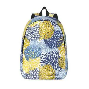 Duduho Blue Yellow And Navy Chrysanthemum Flowers Backpack 15.7 Inch Laptop Backpack Travel Hiking Daypack Daisy Floral Multipurpose Bookbag For Men Women