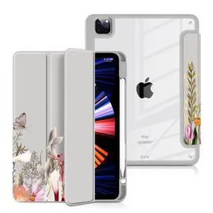 Batianda Hybrid Case for iPad Pro 11-inch 2022 4th M2 2021 (3rd Generation) / iPad Pro 11" 2nd 2020 [Built-in Pencil Holder] Shockproof Cover with Clear Back Shell TPU Bumper,Auto Sleep/Wake,Flowers