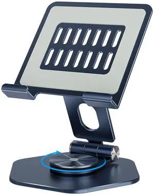 SOJUNER Foldable Aluminum Tablet Stand for Desk, 360 Swivel iPad & Tablet Holder Portable & Stable Desktop Mount for 512.9in Devices, Dark Grey