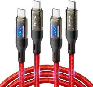 SOOPII USB C to USB C Cable [240W 10ft],Fast Charging USB C Cable with LED Display for MacBook Pro,lPhone16/15/15Pro/15ProMax,Galaxy S23+/S23 Ultra/S22 Ultra,etc.,Transparent Shell(Red-2Pack)