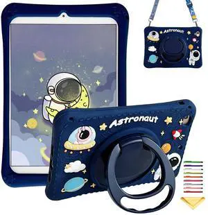 Kids Case for iPad (A16) 11th Gen 11" 2025/iPad 10th Generation 10.9 inch 2022,UUcovers 360 Rotating Ring Handle/Stand Case with Pencil Holder/Shoulder Strap Girl Boy Cute Soft Cover,Astronaut Space