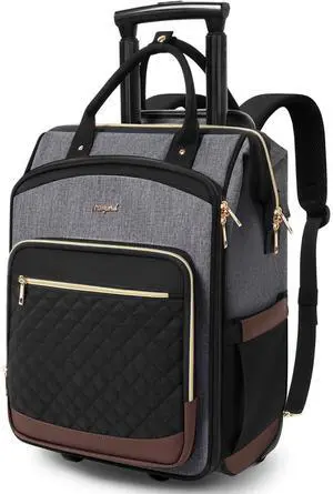 Rolling Backpack for Women, Travel Backpack with Wheels, Vertical Storage Wheeled Laptop Backpack, Underseat Carry on Luggage for College Business Work, Stylish Rolling Laptop Bag, Grey Brown