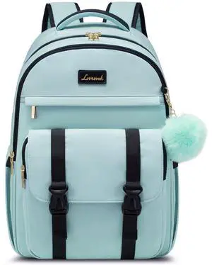 LOVEVOOK School Backpack for Teen Girls, Student Backpack Purse for 14-16 Teenage, Cute Kid Bookbag, Back to School Backpacks Fit 15.6 Inch Laptop, Large College Travel Bag, Mint Green