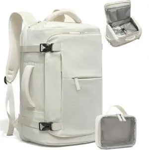 CAMTOP 40L Travel Backpack for Women Men, Lightweight Carry on Backpack for Flight Approved Expandable Personal Item Travel Bag with Makeup Bag Water Resistant Luggage Fits 17.3" Laptop (Beige)