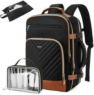 Telena Travel Backpack for Women, 15.6 inch Laptop Backpack TSA Carry on Backpack Personal Item Size Flight Approved Travel Bag Daypack with Multi-Pockets for Work, Travel, Business, Black-Brown