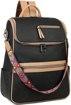 FADEON Laptop Backpack for Women Leather Travel Backpack with Laptop Compartment, Designer PU Shoulder Laptop Bag Black Brown
