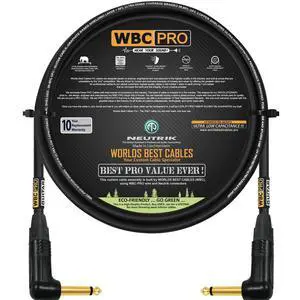 6 Foot - WBC-PRO-Guitar 20 AWG - Low-Cap (18pF/ft) Pro-Grade Graphite-Based - Dual-Shielded Guitar, Bass, Instrument Cable with Neutrik Angled to Angled Inch (6.35mm) Gold TS Connectors