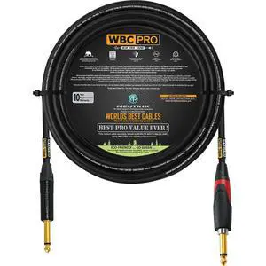 10 Foot - WBC-PRO-Guitar 20 AWG - Low-Cap (18pF/ft) Pro-Grade Graphite-Based - Dual-Shielded Guitar Bass Instrument Cable w/Neutrik Straight (SilentPLUG) Inch (6.35mm) Gold TS Plugs