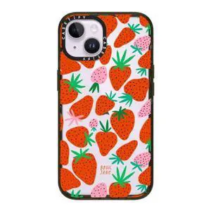 CASETiFY Impact iPhone 14 Case [4X Military Grade Drop Tested / 8.2ft Drop Protection] - Strawberries - Glossy Black