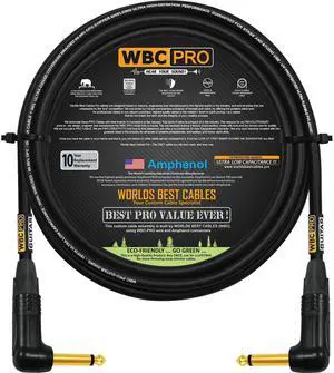 20 Foot - WBC-PRO-Guitar 20 AWG - Low-Cap (18pF/ft) Pro-Grade Graphite-Based - Dual-Shielded Guitar, Bass, Instrument Cable with Neutrik Angled to Angled Inch (6.35mm) Gold TS Connectors