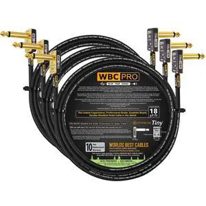 3 Units - 6 Foot - WBC-PRO-Pedal 22 AWG - Low-Cap (18pF/ft) Pro-Grade Graphite-Based - Dual-Shielded Pedal, Effects, Patch, Instrument Cable with Eminence Tiny Gold Plated Angled TS Connectors