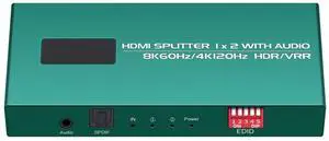 HDMI Splitter 1 in 2 Out 4K 120hz Audio Extractor hue sync Box Support EDID Management 1x2 HDMI Splitters Work for Capture Card Soundbar,HDCP Bypass Duplicator/Mirror/Copy/Downscaler