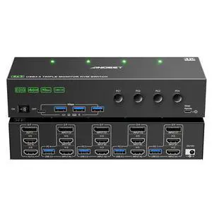 KVM Switch 3 Monitors 4 Computers 4K@60Hz EDID Simulation, 2 HDMI+Displayport KVM Switch Triple Monitor for 4 Computer Share 3 Monitor and 4 USB3.0 Ports, Wired Remote and 4 USB Cables Included