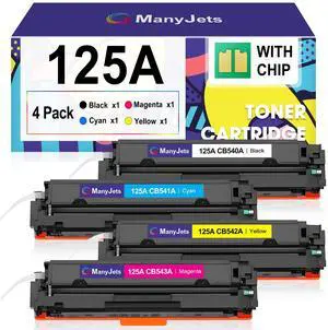 ManyJets 125A Toner Cartridges 4-Pack - Compatible for HP CB540A CB541A CB542A CB543A, Replacement for HP 125A Color LaserJet CP1215 CP1515n CP1518ni CM1312nfi Printer (Black, Cyan, Magenta, Yellow)