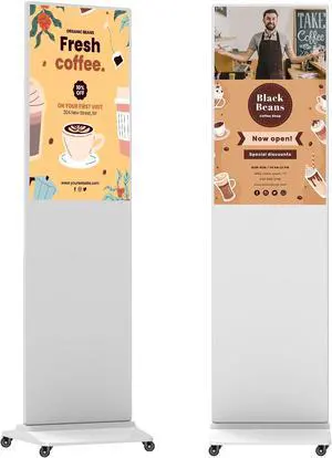 YCKJNB 32 inch Indoor Digital Signage LCD Screen IPS Floor Standing Digital Kiosks Interactive Displays with WiFi HDMI/USB Input Auto AD Player, Android OS White