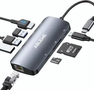 ABLEWE USB C Hub Ethernet, Multiport USB C to HDMI Hub, 8 in 1 4K@60Hz USBC Adapter,1000Mbps, 100W PD, 3 USB 3.0 Ports, Docking Station Compatible for MacBook, Tablet, Phone, Type C Devices