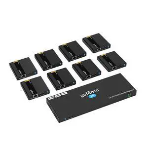 gofanco 4K 1x8 HDMI Extender Splitter Over CAT6/7 131ft (40m) at 4K 30Hz, 230ft (70m) at 1080p, HDCP 1.4, Dual IR, HDMI Loopout, RS232 Control, Surge/Lightning/ESD Protection (HD14Ext-8P)
