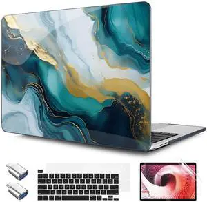 TWOLSKOO for MacBook Air 13 inch Case M4 A3240 M3 A3113 M2 A2681 2025 2024 2022 Plastic Hard Shell, Keyboard Cover, Type C Adapter, Screen Protector for MacBook Air 13.6 inch, Blue Marble