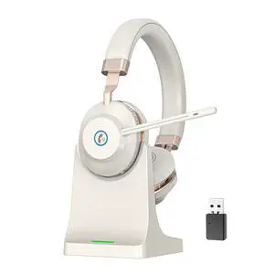 Wireless Headset with Mic for Work, Bluetooth Headset with Microphone, AI Noise Canceling Mic & Mute, Wireless Headphones with USB Dongle & Charging Dock Work from Home/Office/Call Center/Laptop/Zoom