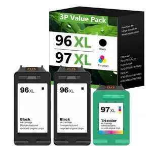 96XL 97XL Ink Cartridges Replacement for HP 96XL 96 XL 97XL 97 XL for Deskjet 6940 6988 6980 Officejet 7310 7210 PhotoSmart 2610 Printers (3 Pack, 2 Black 1Tri-Color)