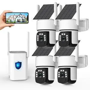 Solar Security Cameras Wireless Outdoor, 4 Cam-Kit, 4MP Home Security System with Color Night Vision, 2.4G & 5G WiFi, 360 Pan & Tilt, 32GB Local Storage, No Subscription, Motion Detection, Spotlight