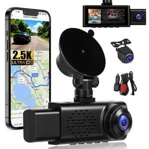 2.5K 3 Channel Dash Cam Front and Rear Inside, 3.16 Inch Dash Camera for Cars Three Way Triple Car Camera with WiFi,GPS Tracking,Super Night Vision,Loop Recording,G-Sensor,24H Parking Monitor