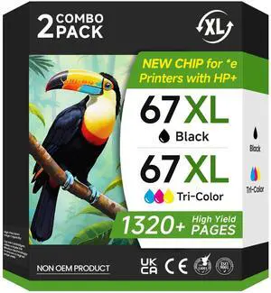 Onorigi 67XL Ink Cartridges Black/Color Combo Pack Compatible for HP Ink 67 67XL Printer Ink for DeskJet 4227e 2855e 2827e 2755e 2700e 2800e 4155e 4255e 2734e 4100 for Envy 6055e 6400 6455e(2 Pack)
