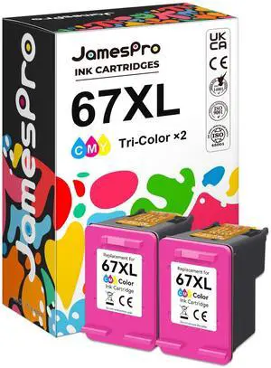 JamesPro High Yield 67XL Color Ink Cartridges (2-Pack) Replacement for HP 67 Color Ink Cartridge Compatible for HP Deskjet 2755e 2855e 2827e 2700 2800e 4255e Envy 6055e 6000 6400 6455e Printer