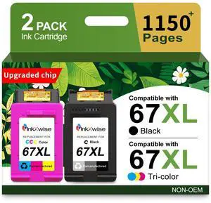 InkXwise 67XL Ink Cartridges Black/Color Combo Pack Replacement for HP 67 67XL Printer Ink DeskJet Envy 2855e 2800e 2755e 2700 2700e 6055e 6000 4255e 4155e 4100 4100e 6400 2752e Printer Ink for HP 67