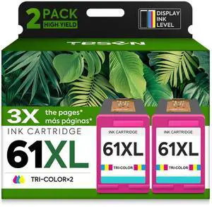 TESEN 61XL Ink Cartridges Remanufactured Replacement for HP Ink 61 HP 61XL High Yield for HP Envy 4500 4502 5530 Deskjet 1000 1056 1510 1512 1010 1055 OfficeJet 4630 Printer (2-Pack, Tri-Color)