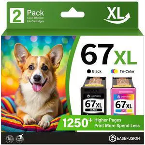 EaseFusion 67XL Ink Cartridges Black/Color Combo Pack Replacement for HP Ink 67 for 67XL HP Printer Ink Compatible with DeskJet 2855e 2755e 2700 4255e 4155e 4100 Envy 6000 6055e 6455e Printer