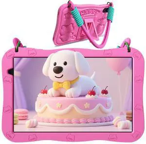 VOLENTEX 10 Inch Kids Tablet with Lanyard Case, Android 15 Tablets for Age 3-12, 32GB Educational Pad, 5G WIFI6,Parental Control, Dual Camera, 6000mAh, Bluetooth (Pink)