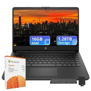HP Portable Laptop, Student and Business, 14" HD Display, Intel Quad-Core N4120, 16GB DDR4 RAM, 64GB eMMC, 1 Year Office 365, Webcam, RJ-45, HDMI, Wi-Fi, Windows 11 Home, Silver