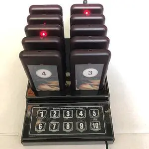QMTWTFSS 10 Pager buzzers 1 keypad Queue Number Call Wireless Calling System Queue Call Restaurant Paging System for Restaurant Food Truck Coffee Shop Office