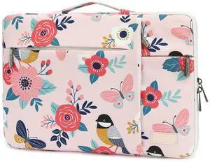 Kinmac 360 Degree Full Body Protective Padded Laptop Sleeve Case with Handle for MacBook 14 inch, Surface 14.4 inch Laptop and 14 inch Laptop - Colorful Rose