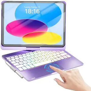 NOKBABO for iPad 10th 11th (A16) Generation Case with Keyboard,iPad Air 11 inch case (M3 M2),keyboard for iPad Pro 11 (4th/3rd/2nd/1st) & iPad Air 5/4th, Trackpad, 360 Swivel, Backlit-Metallic Purple