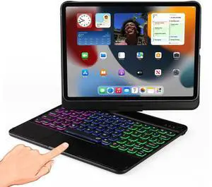 lambasa Clear Keyboard Case for iPad Air 11" (M3/M2, 2025/2024) & iPad Air 5th/4th Gen & iPad Pro 11 inch (1st/2nd/3rd/4th Generation) 7-Color Backlit, 360Rotating, with trackpad Pencil Holder Black