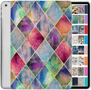 DuraSafe Cases for iPad 9.7 Inch 5 Gen 2017 6 Gen 2018 [iPad 5th 6th ] A1893 A1822 A1954 MRJN2LL/A MR7G2LL/A MR7F2LL/A MP2F2LL/A Printed Cover with Clear Transparent Back Shell - Diamond Grid
