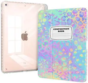Piznernico Case for iPad 9th Generation 2021/iPad 8th/7th Generation 2020/2019 10.2 Inch Case with Pencil Holder, Trifold Stand Slim Shockproof Clear Back Cover, Auto Wake/Sleep, Composition Book