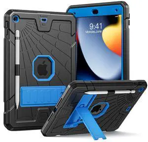 SIBEITU Case Compatible with iPad 9th Generation for Kids, with Pencil Holder Stand, Heavy Duty Rugged Case for iPad 10.2 inch