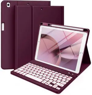 Hamile for iPad 9th Generation Case with Keyboard 10.2 Inch - Backlit Wireless Detachable Folio Keyboard Cover with Pencil Holder for iPad 8th Gen/7th Gen/iPad Pro 10.5"/iPad Air 3rd Gen (Raspberry)