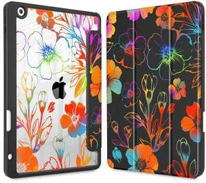 Tuiklol for iPad 10.2 case 2021 Gen 9th Release Built in Pencil Holder - Trifold Stand-Auto Wake/Sleep TPU Protection Stand Clear Back Cover for 2020 2019 [8th/7th] iPad 10.2 Case,Color Flower Black