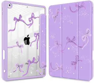 Tuiklol for iPad 10.2 case 2021 Gen 9th Release Built in Pencil Holder - Trifold Stand-Auto Wake/Sleep TPU Protection Stand Clear Back Cover for 2020 2019 [8th/7th] iPad 10.2 Case,Bow-Purple