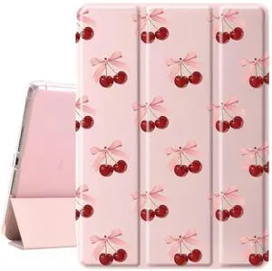 Idocolors Lovely Red Cherry Pad Case for 10.2 Inch iPad 9th/7th/8th Generation, Clear TPU Smart Stand Back Cover with Pencil Holder, Auto Wake/Sleep Protective iPad 2021/2020/2019 Case