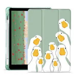 JOYLAND Funny Goose Cartoon Pad Case for 10.2 Inch iPad 9th/7th/8th Generation with Pencil Holder, Auto Wake/Sleep for iPad 2021/2020/2019 Cover, Foldable Smart Stand Green Leather Anti-Scratch Case