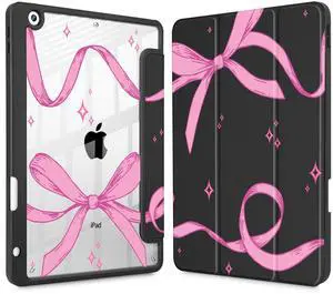 Tuiklol for iPad 10.2 case 2021 Gen 9th Release Built in Pencil Holder - Trifold Stand-Auto Wake/Sleep TPU Protection Stand Clear Back Cover for 2020 2019 [8th/7th] iPad 10.2 Case,Bow-Black