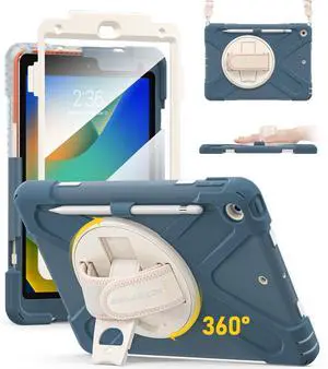 BRAECN for iPad 9th/8th/7th Generation Case,Heavy Duty Shockproof Case with Screen Protector, Pencil Holder, Pencil Cap Holder, Hand Strap, Kickstand,Shoulder Strap for iPad 10.2 Inch 2021/2020/2019
