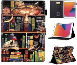 BYCeKe Cute Cat for iPad 10.2 9th Generation Case 9th/8th/7th Gen (10.2-inch, 2021/2020/2019), Premium PU Leather Smart Folio Stand Cover with Auto Sleep Wake&Multiple Viewing Angles, Bookshelf Cat