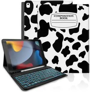 TopPerfekt for iPad 9th Generation Keyboard Case 10.2" 2021, Magnetically Absorbent, Auto Sleep/Wake, Pencil Holder for iPad 8th Gen 2020, 7th Gen 2019, Air 3rd, pro 10.5" (LEDNotebook Cow Black)
