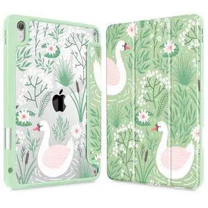 Tuiklol Case for iPad Air 13 (M3 2025 / M2 2024), Buit in Pencil Holder with TPU Protection Shockproof Cover Clear Transparent Back Trifold Stand-Auto Wake/Sleep Tablet Case, Goose Green